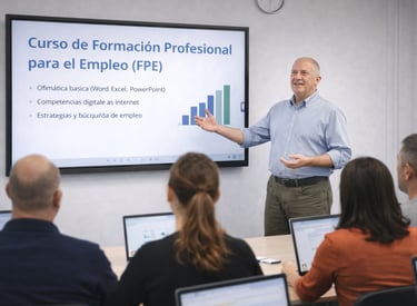 Formación Profesional para el Empleo: Formación orientada al desarrollo de competencias digitales, ofimática y habilidades prácticas para el entorno laboral.